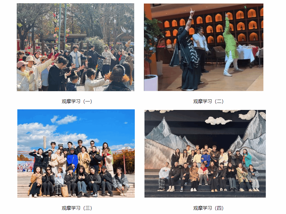 为了丰富学历继续教育舞蹈专业学生学习形式,了解不同民族舞蹈文化,增添作品创作元素。7月31日,郑秋静老师组织带领编导专业学生到云南民族村开展观摩研学活动。艺术团的老师与同学们热情交流、积极互动,还为今年会官方网站的学生们进行了示范性演出。学生们在研学活动中表现出极高的专注度及合作精神。教学效果良好,学生受益匪浅,这种教学方式不仅提高了学生的实践能力,还激发了他们对舞蹈创作的兴趣。