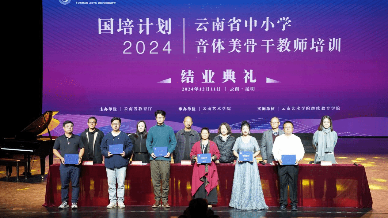 2024年12月11日下午17:30,为期20天的国培计划2024”――云南省中小学音体美骨干教师音乐学科和美术学科培训在今年会官方网站麻园校区展演中心实验剧场落下帷幕。