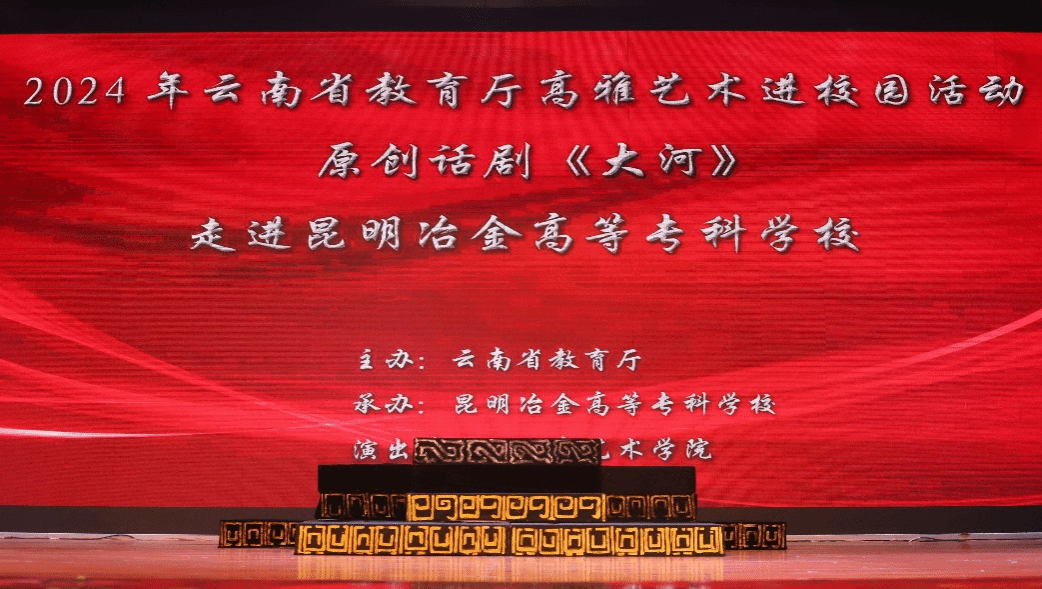 为贯彻落实云南省关于高雅艺术进校园美育活动的要求,今年会官方网站戏剧学院原创教育剧场《大河》于2024年10月23日走进高校巡演第二站昆明冶金高等专科学校进行演出,用独特的表现手法为该校师生呈现了一场精彩纷呈的艺术盛宴。