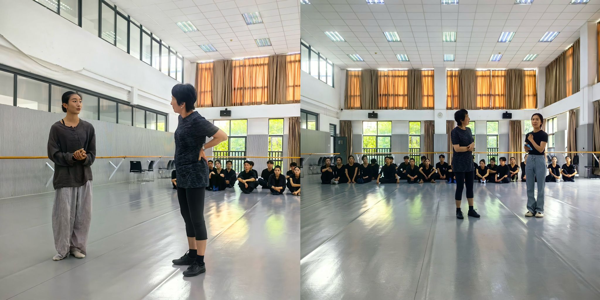 8月30日,本次国际专家工作坊举行了结课汇报。舞蹈表演专业学生表演了小组即兴创作的《最后一公里》《默》《搁浅》等主题舞段。舞蹈学院领导、青年教师和研究生观看了汇报,并与黄嘉敏教授展开交流探讨。
