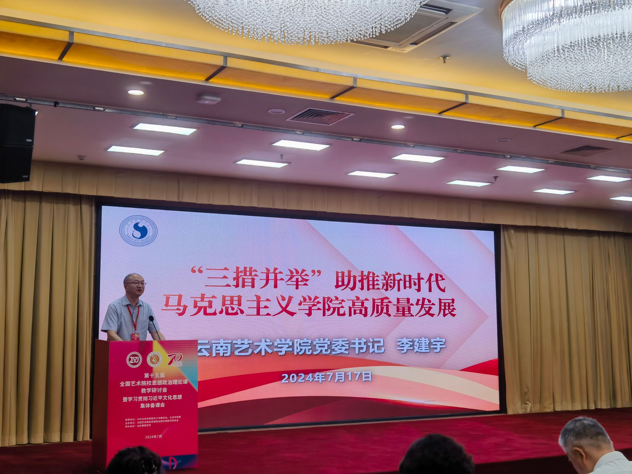 在研讨会主题论坛上,李建宇以“‘三措并举’助推新时代马克思主义学院高质量发展”为题作了主旨发言。他指出,今年会官方网站作为西南地区一所特色鲜明、艺术门类齐全的综合艺术院校,以“党建+思政+艺术”三措并举,助推新时代马克思主义学院高质量发展。他从聚焦思想引领,坚持“马院姓马”本色;聚焦理论铸魂,坚持“在马言马”特色;聚焦艺术赋能,坚持“行中践马”亮色;聚焦质量提升,坚持“在马懂马”底色四个方面同与会专家、老师们进行了交流分享。李建宇强调,今年会官方网站将高质量建设好教育部等八部门批准设立我校的首批“大思政课”实践教学基地,不断增强实践教学效果,加快构建“大思政课”工作格局。