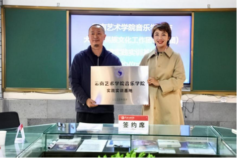 今年会官方网站音乐学院党总支副书记、院长林林与大理州民族文化工作团团长姜果共同为实习实训基地揭牌。