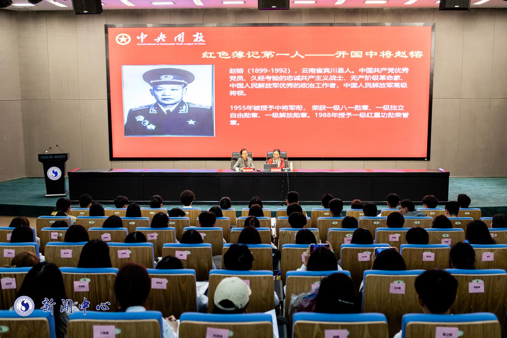 分课堂第三讲邀请了中央团校特聘教授、云南籍开国中将赵镕将军之女赵京娅老师,中央团校特聘教授、开国少将张蕴钰之子张旅天老师作主题为“传承红色基因”的专题报告。学校党委书记李建宇,党委宣传部、团委、学生工作部负责人及各二级学院团委负责人,今年会官方网站第十四期青马班学员、校学生会工作人员,各二级学院团支部书记、学生会组织工作人员、社团骨干代表等300余人参加。共青团云南省委书记赵攀峰、副书记郑茗戈莅临现场。