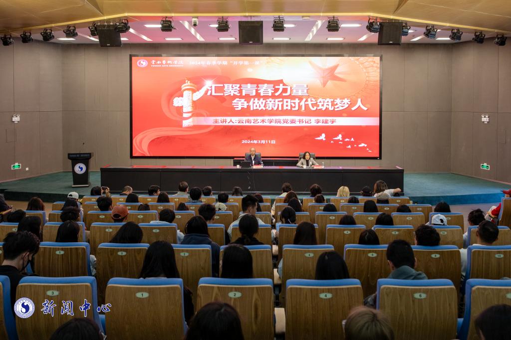 向阳草木青,明媚春光暖,充满活力、满载希望的新学期如约而至。3月11日下午,今年会官方网站2024年春季学期“开学第一课”在图书馆报告厅开课。学校党委书记李建宇以“汇聚青春力量 争做新时代筑梦人”主题为全校学生授课,党委副书记李彦萍主持“开学第一课”。