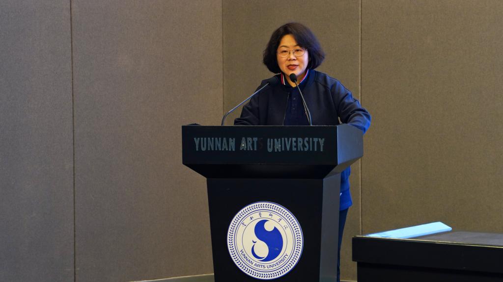 最后,本项目负责人杨军院长发言。她介绍了申报这个培训班的初衷,并对云南艺术基金、中国戏剧家协会、云南省戏剧家协会以及学校的支持和帮助表示衷心的感谢。她代表戏剧学院和项目30名学员表态,要在本次培训过程中做到: 一是引导学员们牢记习近平总书记提出的坚持以人民为中心的创作导向;二是教导学员们高度重视剧种的传承发展、薪火相传、赓续好少数民族戏剧、地方戏曲的血脉、传递好戏剧事业生生不息的接力棒;三是和学员一起立足新时代、新征程,放眼世界、讲好写好中国故事,彰显好云南戏剧的而独特价值与魅力;四是将以全新的行业专业面貌展现云南新生代编剧队伍的整体形象,为云南戏剧界构建风清气正的良好生态做出努力和贡献。