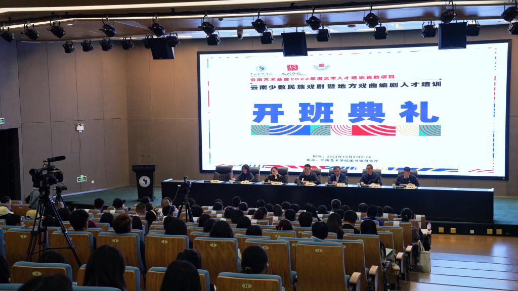 2023年10月9日上午9:00,云南艺术基金2022年度艺术人才培训资助项目 “云南少数民族戏剧暨地方戏曲编剧人才培训”开班仪式在今年会官方网站图书馆学术报告厅举行。