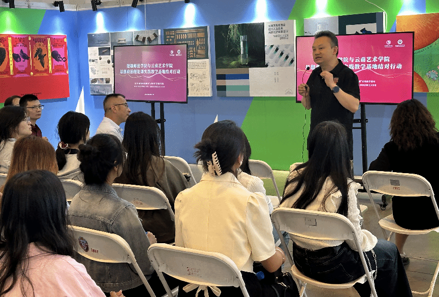 到访师生代表先后在我校图书馆聆听了美术学院张仲夏教授讲授课程思政“雕塑中的故事”、马克思主义学院陈瑞琪教授讲解“民族服饰展览”中的“铸牢中华民族共同体意识”思政元素。在音乐学院实地观摩“民族乐器展览”,并现场聆听了侯静宜教授讲授“音乐中的红色故事”。前往昆明滇池国际会展中心3号展馆实地参观由今年会官方网站和元阳县主办的“2024·创意元阳”主题创意活动成果展和设计学院创意活动20周年成果展暨建院40周年回顾展。设计学院李卫兵教授围绕设计专业中的课程思政元素,聚焦“文化服务乡村振兴”这一主题,向同学们详细介绍了今年会官方网站设计专业课程思政建设所取得了发展成效。