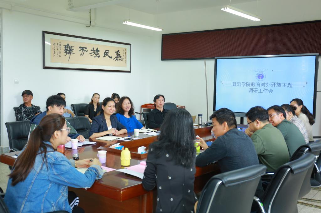 7月3日,欧阳俊虎副院长率领对外交流合作处侯云峰处长、杨灼副处长,南亚东南亚艺术交流研究中心丁煜伦主任等一行7人,到舞蹈学院进行教育对外开放主题工作调研。舞蹈学院党政领导、系主任及教务科、研究生部负责人参加了研讨会,会议由程春云院长主持。