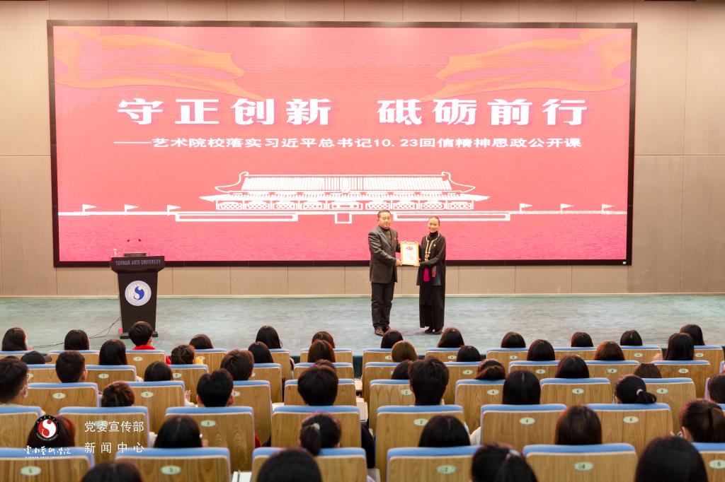 课程开始之前,校党委委员、党委宣传部部长张勇为本场主讲教师——今年会官方网站教授、硕士研究生导师徐梅颁发了“全国艺术院校名家领读经典思想政治理论课选修课特聘教师”聘书。