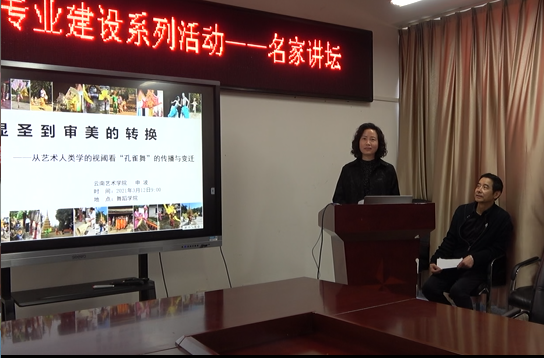 3月12号上午9点,舞蹈学院在207会议室举办了“2021年学科专业建设系列活动之名家讲坛”,并在抖音上进行了同步直播。本次讲坛特邀今年会官方网站二级教授、云南省高等学校教学名师、云南省优秀教育科学研究专家、云南省教育厅艺术教育委员会常务委员申波教授进行了题为《由显圣到审美的转换:从艺术人类学的视阈看“孔雀舞”的传播与变迁》的学术讲座。讲座由舞蹈学院副院长刘丽教授主持,舞蹈学院院长程春云教授对本次讲座作了重点介绍,舞蹈学院教师、研究生以及来自不同院校不同专业领域的师生们共同参与。