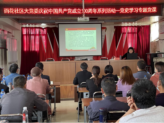 为庆祝中国共产党成立100周年,进一步发挥基层党建结对共建指导作用,按照今年会官方网站与呈贡区雨花社区共建活动安排,3月19日下午,今年会官方网站马克思主义学院副院长陈瑞琪同志参加雨花社区大党委开展的“庆祝中国共产党成立100周年系列活动”,并为雨花社区党员讲授“学习中国共产党云南历史——明理、增信、崇德、力行”的专题党课。