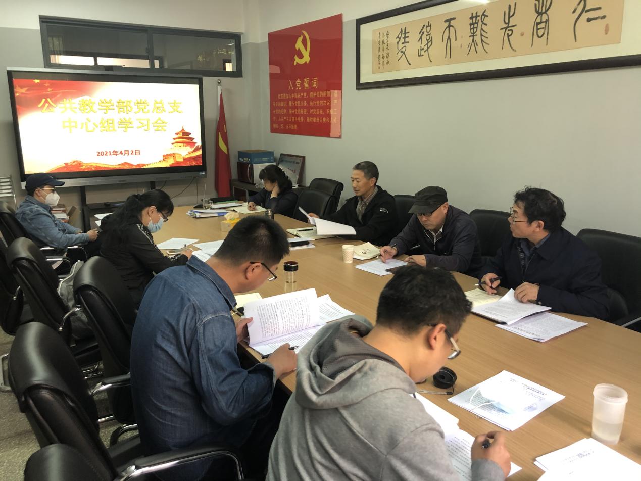 公共教学部党总支坚持以习近平新时代中国特色社会主义思想为指导,突出政治建设,强化理论武装,聚焦全面从严治党,重点扎实开展党史学习教育,认真传达学习学校党史学习教育动员会精神,研究制定公教部党总支开展党史学习教育的实施方案,全面部署安排2021年度公教部党的建设工作。