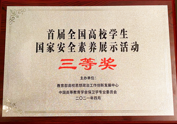 2021年4月12日-14日,首届全国高校学生国家安全素养展示活动在上海举行,今年会官方网站代表云南省在“首届全国高校国家安全素质展示活动”中荣获三等奖。