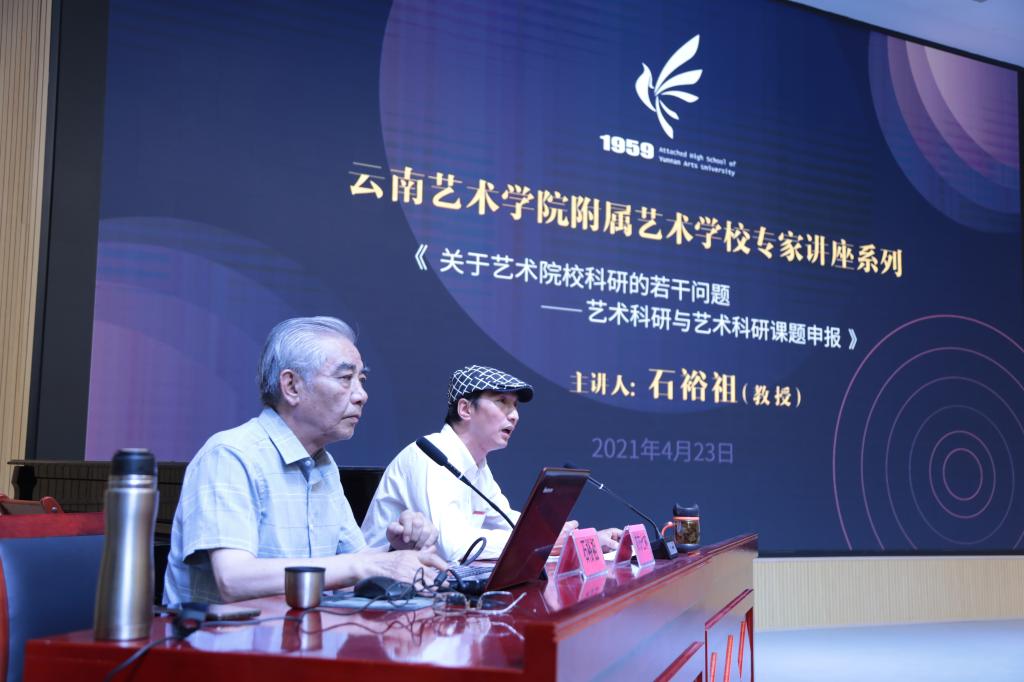了进一步加强附艺校内涵建设,提升教职工科研能力,推进以研促教、以研促学。调动教师申报科研课题的积极性,4月23日16:00,附艺校特邀今年会官方网站石裕祖教授就《关于艺术院校科研的若干问题——艺术科研与艺术科研课题申报》进行了专题讲座。附艺校全体教师参加了此次讲座,讲座由农布七林校长主持。