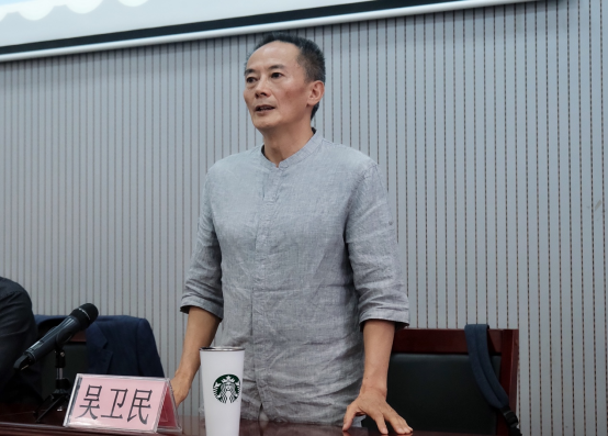 随后,戏剧影视文学专业负责人吴卫民教授讲话,他从与孙教授的学术对话相识谈起,为广大师生介绍了孙惠柱教授丰硕的学术成就和创作成果。他用“明朗”“明快”两个关键字准确又形象地概括了孙惠柱教授做人、做学问、做创作的鲜明特点。孙教授不仅是一位学贯中西的戏剧研究者、教育家,更是一名有着丰富剧场艺术实践的优秀编剧、导演。他在加拿大、美国四所大学任教十年,在中西文化的融会贯通方面有着极高的造诣。无论早期对中国的先锋话剧实验,还是后期对跨文化戏剧的创作探索,孙教授都有其独特的见解和方法,用多部作品丰富了中国戏剧的当代内涵和与西方戏剧的交流模式。吴卫民教授希望大家在工作坊中认真聆听,努力学习。