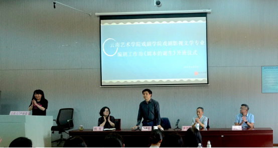 开班仪式由戏文系主任严程莹教授主持。杨军院长致辞,她代表学院党政班子及全体师生对孙教授的莅临表示了热烈的欢迎,向孙教授多年来对戏剧学院在学科建设、专业建设和人才培养方面的鼎力支持表示了衷心感谢。她指出此次编剧工作坊是集人才培养新模式探索和成果产出、服务社会、服务地方的一次综合教研教改项目。希望师生们珍惜此次宝贵的学习机会,与孙教授积极配合、互动、请教,获得切实的提升和进步。