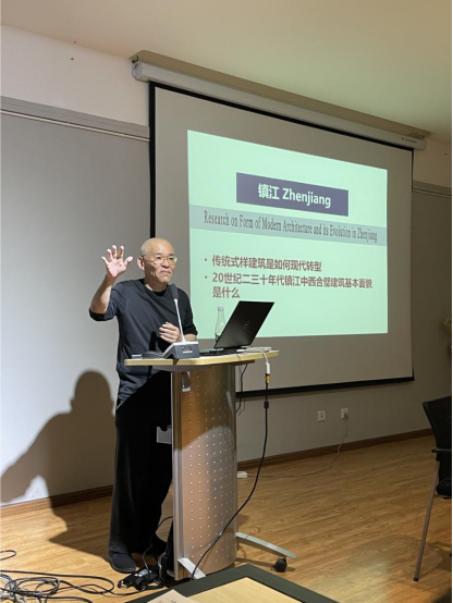 过伟敏教授从“设计问题”的宏观思考和“我们的研究工作(江南建筑艺术遗产保护与再生)”两个方面展开本次讲座内容。