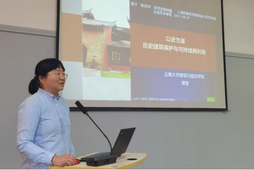 设计学院环境设计专业依托“国家级一流本科专业”建设点,开展“人居环境与可持续设计系列讲座”,加强我院师生科研学术能力。于2021年5月7日下午,设计学院邀请云南大学建筑与规划学院撒莹副教授在设计学院103教室作题为“以史为鉴——历史建筑保护与可持续再利用”的学术讲座,该讲座为系列讲座第二讲,环境艺术专业全体师生到场聆听学习交流。