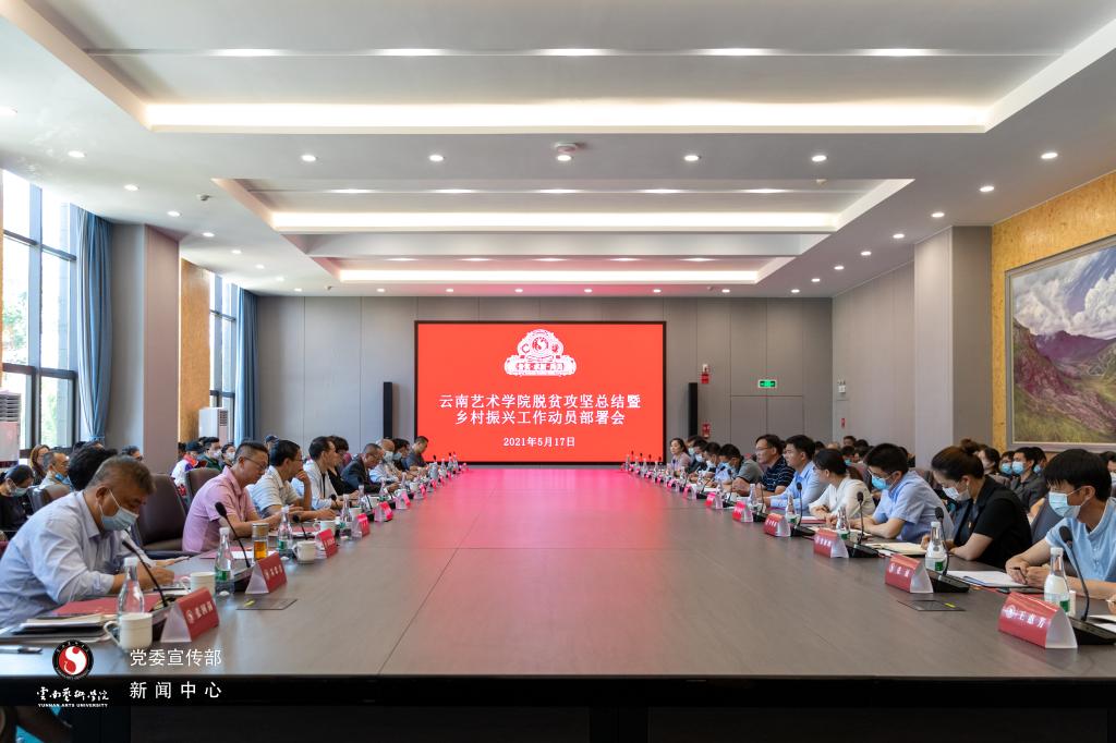 为深入学习贯彻习近平总书记在全国脱贫攻坚总结表彰大会上的重要讲话和考察云南重要讲话精神,大力弘扬伟大脱贫攻坚精神,巩固拓展脱贫攻坚成果,全面推进乡村振兴,我校于5月17日在呈贡校区图书馆会议室召开脱贫攻坚总结暨乡村振兴工作动员部署会,旨在总结回顾学校在脱贫攻坚中的主要工作和成效,对下一步巩固拓展脱贫攻坚成果,推动乡村振兴工作进行安排部署,动员和激励全校上下大力弘扬脱贫攻坚精神。学校党政领导班子、相关部门主要负责人、2016——2021年驻村扶贫工作队队员参加了会议。会议由校党委副书记、校长郭浩主持。