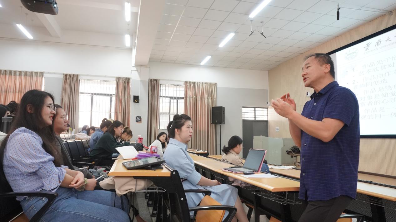 为认真贯彻落实“着力贯彻新发展理念办实事”重点任务要求:完整、准确、全面地贯彻新发展理念,推动解决困难师生的实际问题,围绕增强创新能力、推动教学发展、改善工作学习环境、提高科研教学水平等重点领域和关键环节,深入分析学校发展的优势领域和短板不足,更加精准地制定发展思路、出台改革方案,主动服务和融入新发展格局,促进高水平办学取得更为明显的实质性进展,让师生共享高质量发展成果。公教部党总支在前期认真思考调研和充分准备的基础上,特别邀请了云南大学文学院院长、博士生导师王卫东教授,为全校2020级研究生高端讲授艺术理论专题,为公教部全体教师进行重点主题辅导,扎实开展“我为群众办实事”实践活动。