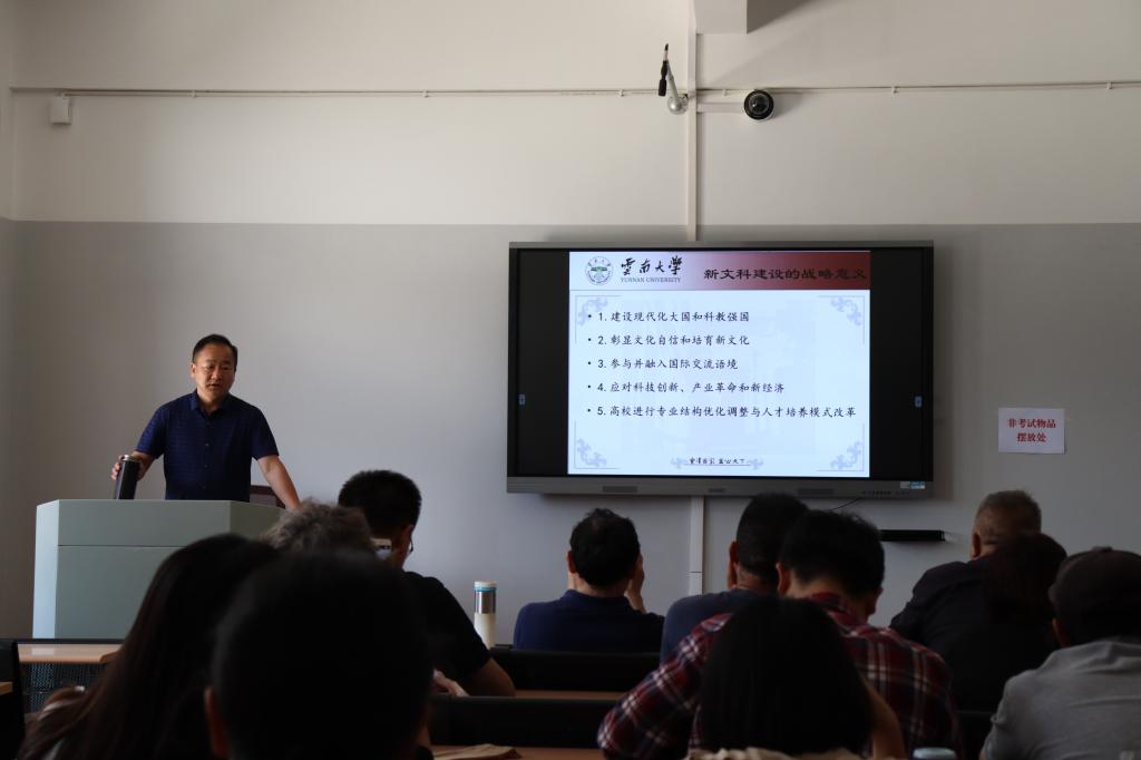 28日下午,在公教楼B301教室,王卫东教授主要为公教部全体教职工进行题为《新文科建设路径的思考》的主题辅导。辅导讲座由公教部党总支书记杨祝飞主持。推进新文科建设,是习近平总书记4月19日在清华大学考察时强调的重点任务之一。就如何推进新文科建设,王卫东教授从新文科建设的战略意义、内涵特征、人才培养改革基本要求、发展理念研究与实践、项目申报等方面,以自己的深入思考、积极推进和取得成效为线索,进行了全面详细的介绍,让身处教学一线的公教部教师对新文科的建设内涵、发展方向、实现途径以及在课程思政建设中的融合、科研的新定位、新路径等,有了更加深入的理解、启发。两场精彩的专题辅导,在浓厚的学术氛围中圆满结束,让师生听有所获、听有所感、听有所用,进一步开拓了师生的眼界,启发着师生的心智,为师生指明了未来努力和前进的方向。