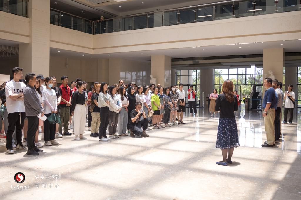 此次展览共三个系列,分别展现中国共产党过去、现在以及未来的发展。展览内容丰富全面,形式新颖多样,结合传统画作和VR全景全方位展现中国共产党百年历程。展厅现场气氛活跃,参展师生都积极观展并参与VR互动体验。
