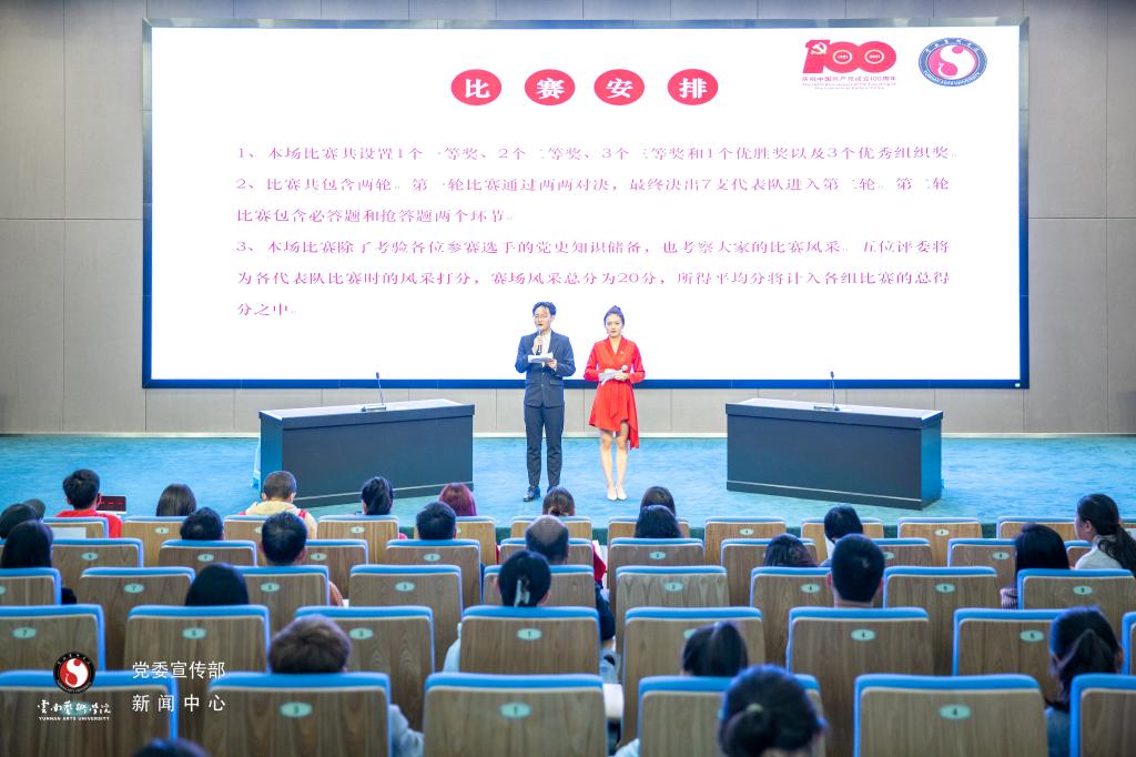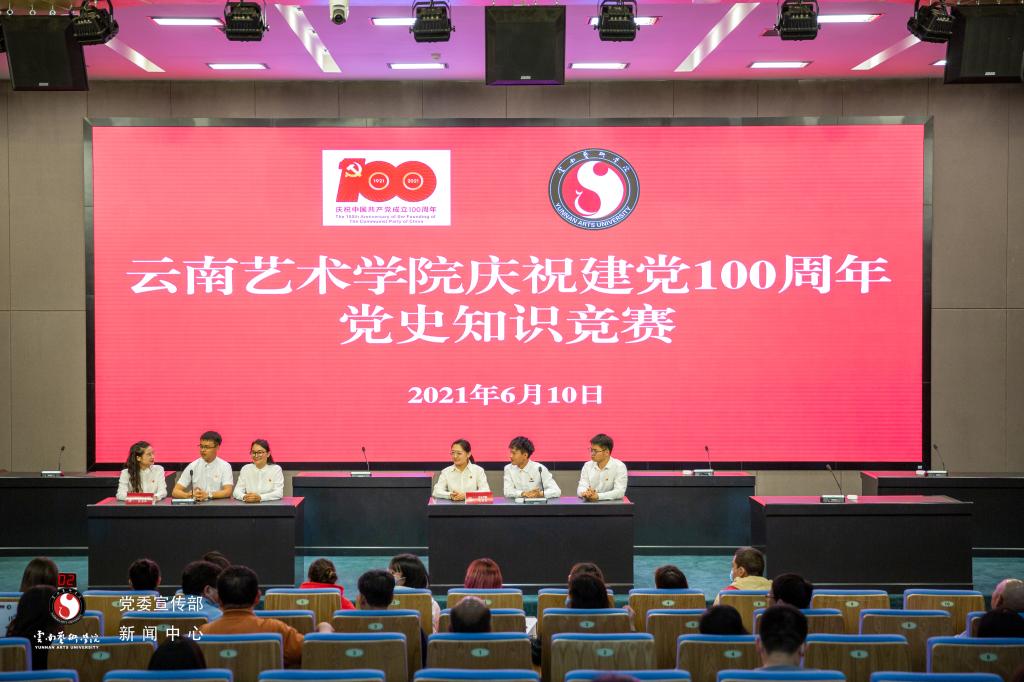 2021年6月10日,“艺展百年辉煌 传承红色基因”今年会官方网站庆祝建党 100 周年党史知识竞赛在我校呈贡校区图书馆报告厅圆满举办。决赛现场气氛紧张而热烈,参赛选手思维敏捷,沉着冷静,配合默契,充分展现了云艺师生的风采。