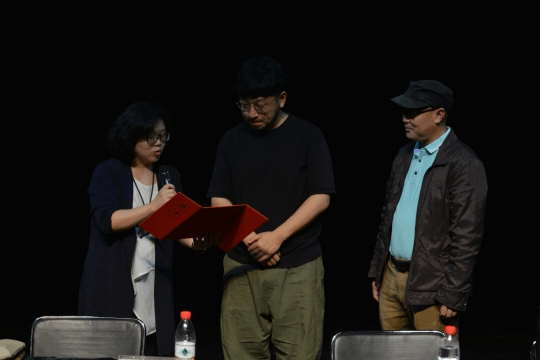 6月15日上午9:30,工作坊开班式暨导演系三年级剧目排练互动在戏剧学院112小剧场举行,知名音乐剧新锐导演高瑞嘉,戏剧学院党委书记张国岗、院长杨军、党委副书记张云生、副院长杨俊霞、导演系负责人李凯,以及戏剧影视导演专业全体师生及部分其他专业师生参加了开班式。导演系负责人李凯主持开班式,杨军院长致辞,高瑞嘉导演讲话,张国岗书记和杨军院长为高瑞嘉导演颁发“创作导师”聘书。