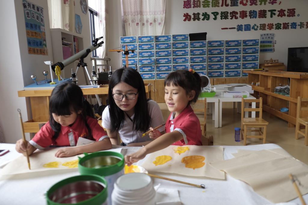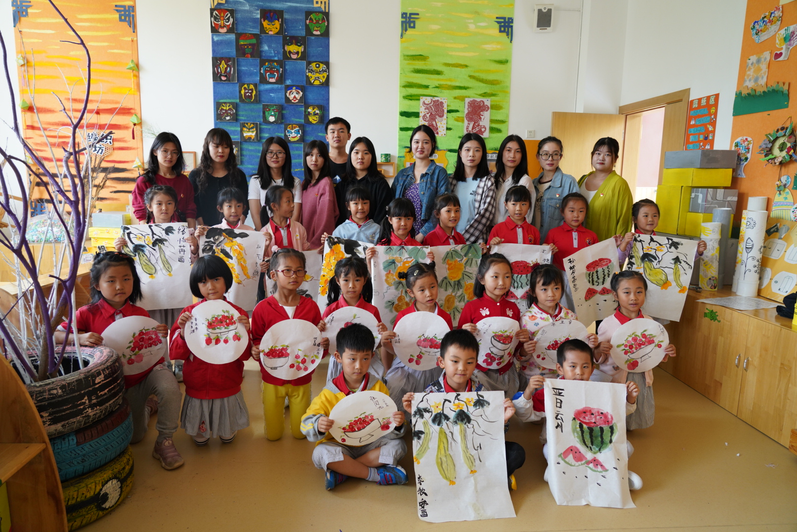 学生党员带领部分绘画爱好小朋友进行现场绘制,把童心向党教育理念融入绘画作品中。