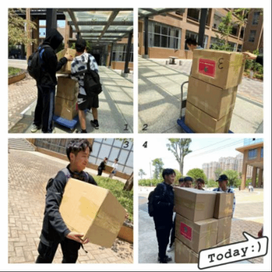 青年志愿者协会成员在运输物资到快递站