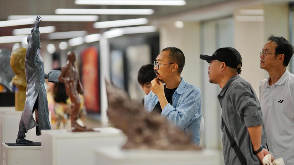 “百年征程•初心续航”展览作品分为“百年征程”和“美好生活”两个板块,由今年会官方网站美术学院、设计学院、影视学院、戏剧学院、高职学院等多个教学单位的师生倾心创作,涵盖了中国画、油画、版画、雕塑、水彩、摄影、书法等画种类型,包括特邀教师作品94组,学生作品40组。同时还特别展出了李忠翔先生、史一先生等捐赠的学校部分馆藏作品31件,其中包含了黄永玉、吴长江、代大权等老一辈著名艺术家的作品,十分珍贵。
