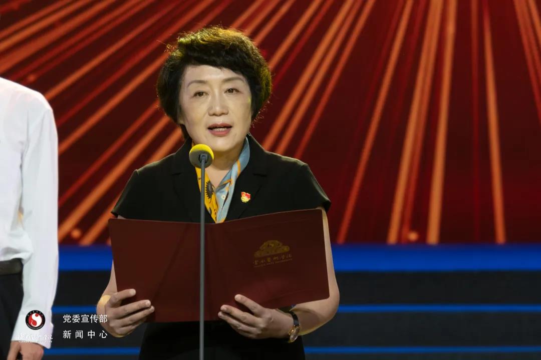校党委书记黄雁玲致辞,她代表学校党委向荣获“光荣在党50年”纪念章的老党员表示崇高敬意,向受到表彰的组织和个人表示热烈祝贺,向全校各级党组织和全体党员表示诚挚的问候。她指出,党的一百年是劈波起航,风雨同舟的一百年,是波澜壮阔,不忘初心的一百年。一百年来,中国共产党始终肩负着为人民谋幸福,为民族谋复兴的伟大历史使命,铸就了彪炳史册的不朽功勋,创造了一个又一个中国奇迹,开启了中国特色社会主义新征程,带领中国民族迈进了实现中华民族伟大复兴的新时代。她强调,我校始终紧跟中国共产党前进的步伐,始终与党发展同向同行,始终以高质量党建引领和保障学校事业的发展,始终坚守为党育人,为国育才的初心和使命。最后,她号召广大党员应不断汲取立德树人的丰厚滋养和奋进力量,紧紧团结在以习近平同志为核心的党中央周围团结奋进,砥砺前行,走好新时代学校高质量发展新征程,努力开创学校事业发展新篇章。