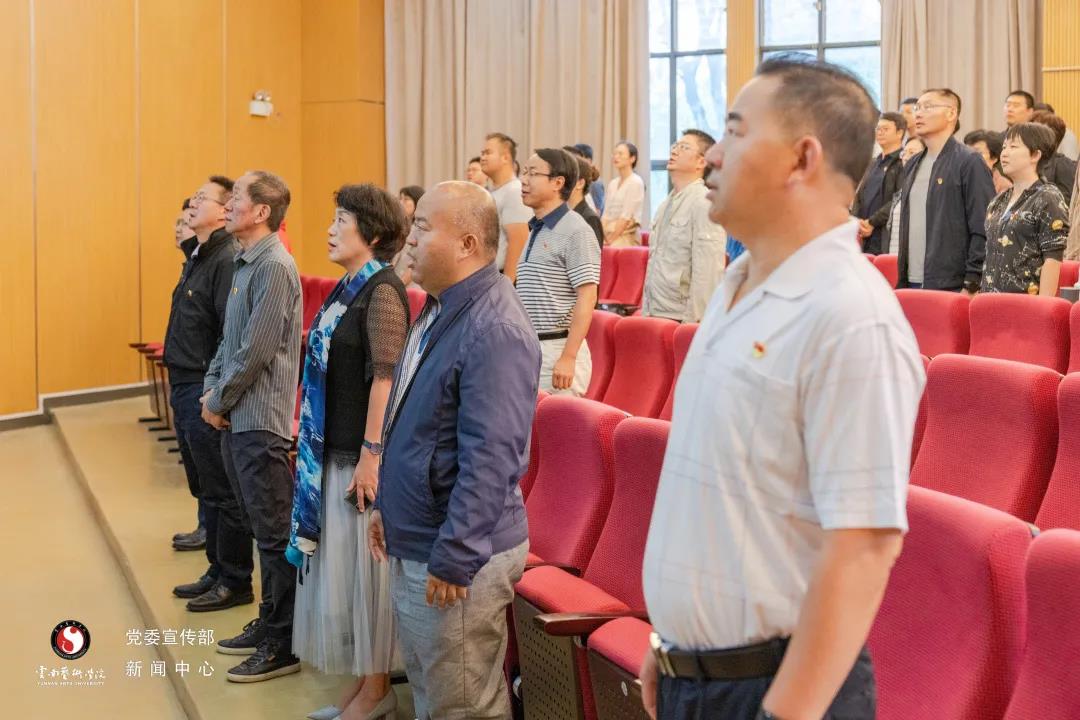 7月1日上午,我校机关职能部门全体党员干部在呈贡校区行政楼114报告厅收看党中央庆祝中国共产党成立 100 周年大会。全体党员干部认真学习,现场反响热烈,氛围浓厚。