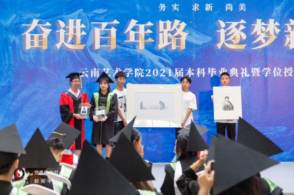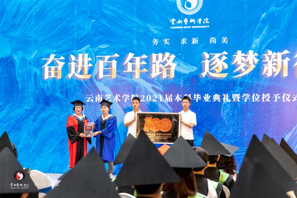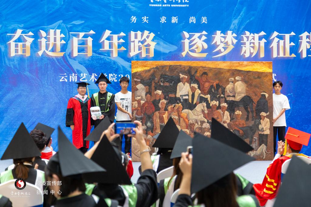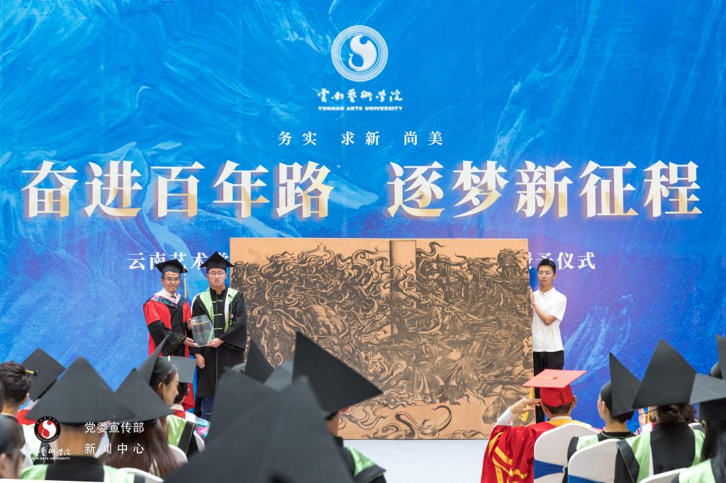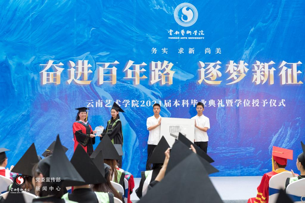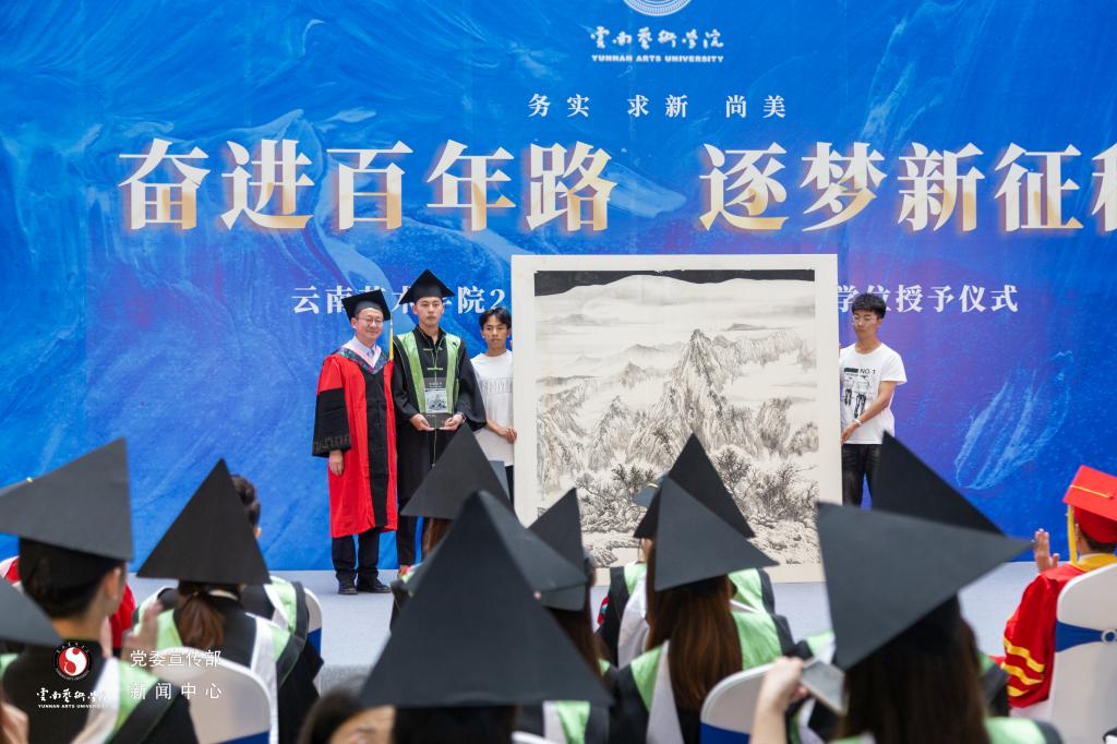 文艺演出展示出云艺学子对专业的坚韧态度,未来云艺人也将继续在热爱的舞台上发光发亮。随后,所有老师及毕业生移步图书馆,进行“谢师礼”、“毕业生作品捐赠仪式”、“拨穗仪式”。