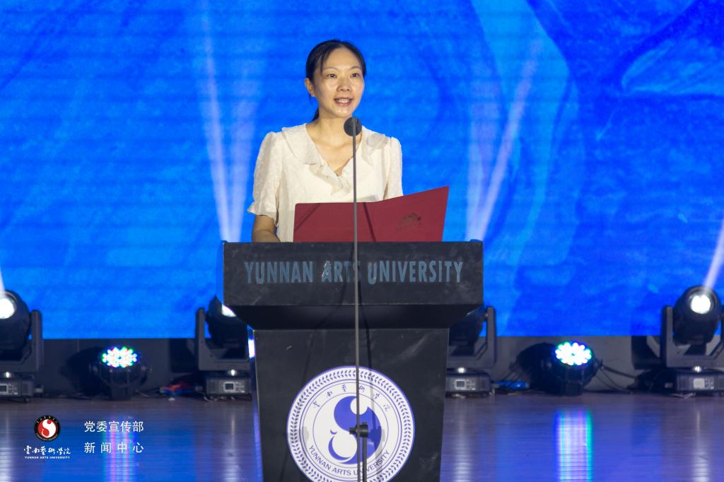 2021届本科毕业生代表张露月同学在发言中表达了对母校深深的眷恋和不舍。回望过去四年,良师用高尚的教师理想和严谨的教学态度,指导者每一位云艺学子成长。益友身上的闪光点深深地激励着,感染着自己。最后她表示作为这个时代的新青年,要坚定理想信念。要明确目标,坚定信念。常怀一颗好学之心和勇敢之心。希望每一位毕业生,最终都能够在自己热爱、坚持的领域发光发热。