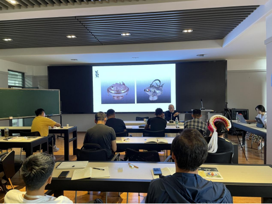 赖庆国老师向学员们讲述锡器的创新案例