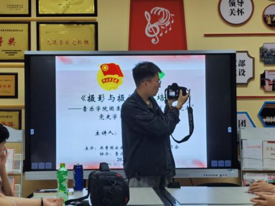 2021年5月6日19:30音乐学院青年志愿者协会宣传部、音乐学院新媒体中心全体成员预计30人在音乐学院B106教室参加了“摄影与摄像技能培训”专题培训讲座。讲座由影视学院2018级广编班的申鹏耀同学为同学们详细的讲解相机的用法以及不同场景照片拍摄的手法和注意事项,并对拍摄出的成品照片后期编辑操作进行了详细的讲授。为音乐学院青年志愿者协会宣传部、音乐学院新媒体中心全体成员在今后学院活动的拍摄提供了很好的技术指导和支持。