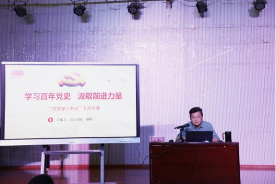 2021年7月2日17:00音乐学院团委、学生会、青协、新媒体中心2019级全体成员、2021年新发展团员预计50余人在音乐学院B403演播厅同今年的入党积极分子、发展对象一起,参加了由音乐学院党总支纳海书记主讲的“学习百年党史 汲取前进力量”的党史专题培训讲座。纳海书记强调了四史学习的重要性,不仅带领大家回顾了百年党史,还带大家学习了新中国史、改革开放史、社会主义发展史,教育大家要“以史为鉴,开创未来”,嘱咐团学骨干要认真学习习近平总书记的系列讲话精神、谨遵习近平总书记的教诲,做祖国的志气、骨气、底气,不负韶华,努力奋斗。