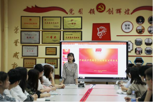 2021年7月3日10:00音乐学院团委、学生会、青协、新媒体中心2020级全体成员、2021年新发展团员预计60余人在音乐学院B106党员活动室,同今年的发展对象一起,参加了由音乐学院团委副书记李青老师主讲的“中国共产党领导下的国家百年巨变”社会主义发展史专题培训讲座。李青老师带领团学骨干重温了天安门广场举行的庆祝中国共产党成立100周年大会上团员代表和少先队员代表的致献词和习近平总书记在庆祝大会上的“金句”,并学习了党在觉醒年代的“伟大建党精神”和在党的坚强领导下的国家巨变,要求同学们不断增强“四个意识”、坚定“四个自信”、做到“两个维护”。