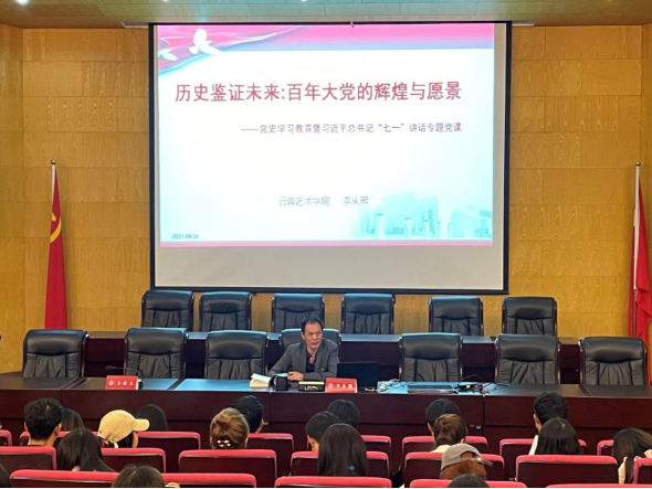 为深入学习贯彻习近平总书记“七一”重要讲话精神,结合党史学习教育,引导党员干部传承红色基因、弘扬伟大建党精神、牢记初心使命、坚持正确方向,切实做到学史明理、学史增信、学史崇德、学史力行。9月24日下午,今年会官方网站党委副书记李从熙同志在行政楼114报告厅以“历史鉴证未来:百年大党的辉煌与愿景”为主题讲授了专题党课,带领党员师生学习习近平总书记在庆祝中国共产党成立100周年大会上的重要讲话精神。今年会官方网站设计学院党委、组织部直属党支部、工会团委直属党支部近200名师生党员在场聆听了党课,党课由设计学院党委书记余光荣同志主持。