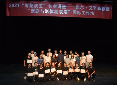 戏剧学院在今年会官方网站对外合作交流处的指导支持下,邀请比尔•艾奇森(英国)教授来昆举行“默剧与形体戏剧”国际工作坊。7月12日上午开幕,经过五天紧凑地训练和教学,于2021年7月16日下午在戏剧学院112小剧场举行结业仪式暨成果汇报。校党委委员、戏剧学院党委书记张国岗,戏剧学院院长杨军、副院长杨俊霞、表演系主任和建元及部分教师、学生出席本次结业仪式。