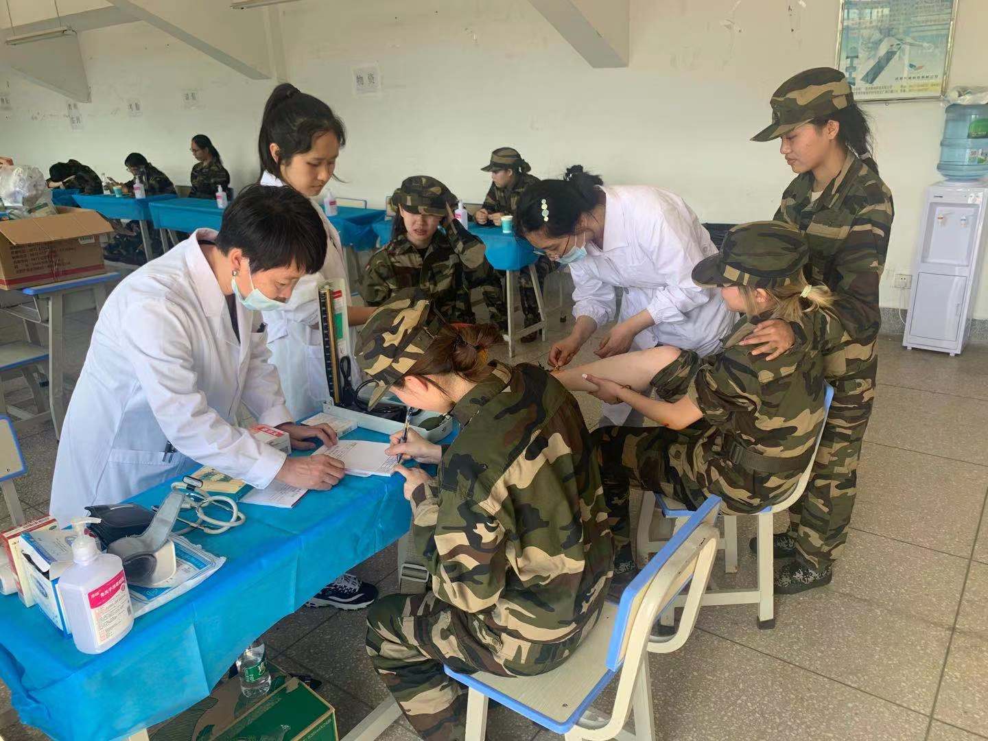 结合历次军训特点,根据各阶段易出现的常见病、多发病,基建后勤处卫生科提前备齐了防暑降温、感冒、外伤、过敏、腹痛、腹泻等相关药品;为减少参训学生就诊等候的时间,基建后勤处卫生科还通过延长工作时间、增加值班医生,竭尽所能地为广大师生提供更加方便、快捷的医疗服务,力争在第一时间内处理训练中的医疗事件。同学在训练中出现了中暑、眩晕、过敏、扭伤等不同症状,现场医务人员都能以良好的态度和有效的诊疗手段做出相应的处理。
