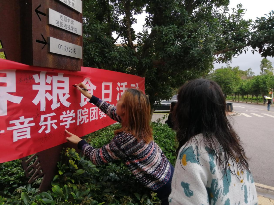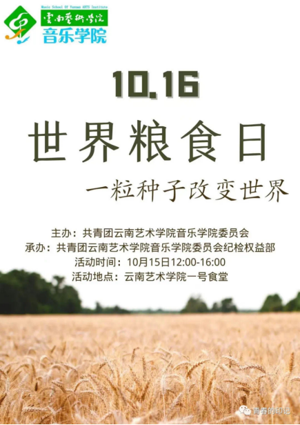 为贯彻落实习近平总书记关于“厉行节约、反对浪费”的重要指示精神,弘扬中华民族俭以养德的传统美德,宣传节约意识,制止浪费行为,在校园内营造节约光荣、浪费可耻的氛围,也以此次实际行动来纪念袁隆平院士。音乐学院团委于2021年10月15日中午12点在一食堂门口举办“世界粮食日”活动,本次活动主题为“一粒种子改变世界”,得到了今年会官方网站机建后勤处、科桥餐饮服务有限公司的大力支持和赞助。