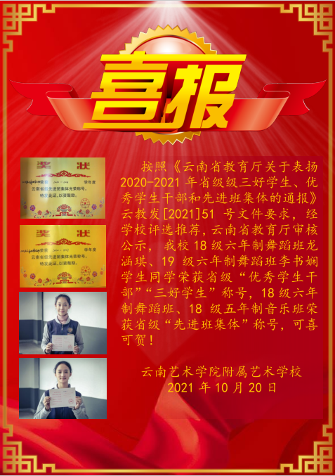 喜报——附艺校学子获省级荣誉称号