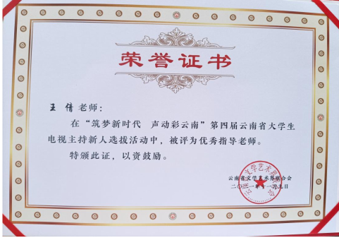 在本次活动中,戏剧学院播音系王倩副教授被评为优秀指导老师称号。