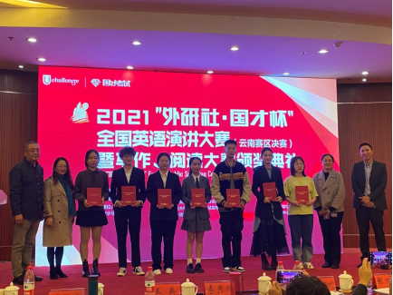 2021年11月5日,“外研社·国才杯”全国英语演讲大赛云南赛区决赛在云南农业大学落下帷幕。我院美术学院2019级学生冯楚涵在比赛中,展现出云艺学生良好的精神风貌和突出的个人综合素质,最终荣获三等奖,公共教学部外语教研室教师卢冬荣获指导教师三等奖。