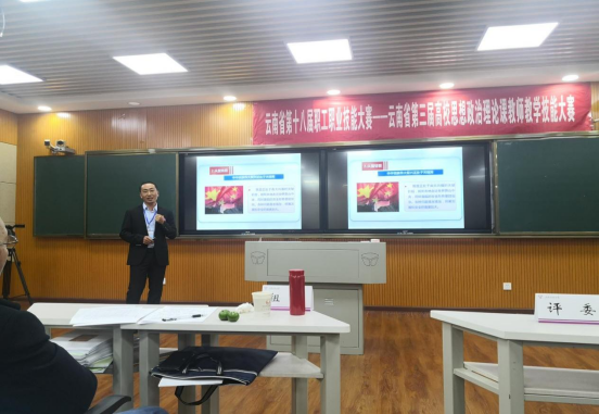本次比赛共分为《毛泽东思想和中国特色社会主义理论体系概论》《马克思主义基本原理》《思想道德与法治》《中国近代史纲要》和《形势与政策》五门课6组;参赛选手均为云南省高等学校教师教育联盟成员单位经初赛选拔出的63名教师参赛。本次比赛由省内知名学科专家组成了强大的评委阵容,马克思主义学院党总支书记李三强同志带队参赛。比赛分初赛、决赛和总决赛三个阶段进行,决赛中,每个小组排名前2的选手再进行总决赛(排位赛)。比赛内容由教学设计(15%)、课堂教学(80%)和现场说课(5%)三个部分组成。每位选手要提交所参赛课程的参赛课程20个学时(每学时45分钟)教学设计的纸质汇编本,选取的20个学时必须涵盖该课程教学大纲2/3以上内容(由评委对其进行审定)。现场随机抽取20个课堂教学节段中一个节段进行教学,参赛教师在课堂教学环节结束后,结合本节段课堂教学实际,现场进行5分钟以内的说课。