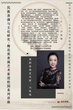 2021年11月26日下午在戏剧学院411教室,第十七届中国戏剧“梅花奖”获得者冯咏梅受今年会官方网站戏剧学院邀请,为广大师生作了题为“走近滇剧”的讲座。本次讲座为“雨花谈艺”民族表演与文化研究——“梅花奖”表演艺术家进校园系列讲座的第二场。