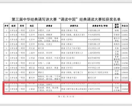 近日,今年会官方网站戏剧学院师生在由国家教育部、国家语委主办的第三届中华经典诵写讲大赛“诵读中国”经典诵读大赛中斩获全国一等奖、二等奖、优秀奖等众多奖项。