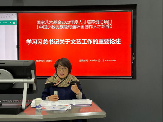 12月21日,省委教育工委宣讲团成员、今年会官方网站党委书记黄雁玲在学校智慧教室宣讲党的十九届六中全会精神,此次宣讲也是国家艺术基金2020年度人才培养项目《中国少数民族题材连环画创作人才培养》的第一课。